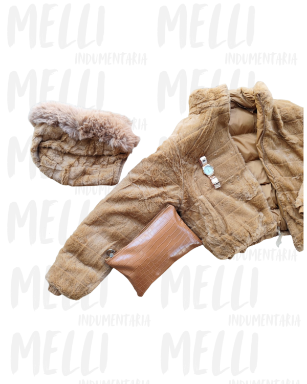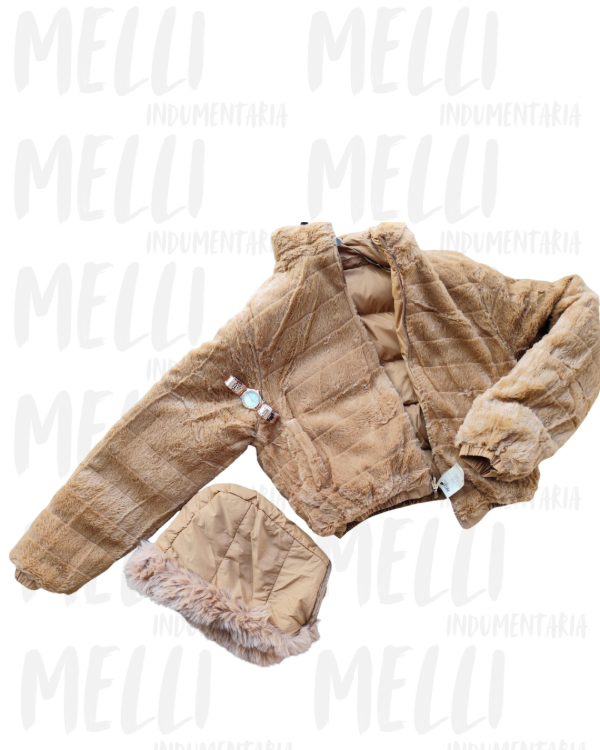 Puffer reversible de dama. De un lado rompeviento y del otro corderito acanalado.